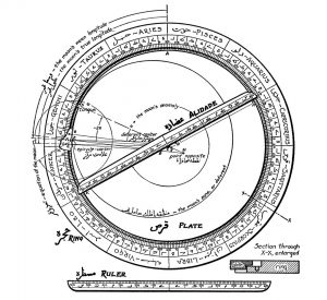 من این رساله را پیدا نکردم. نمیدانم که آیا به چاپ رسیده یا نه. اما باید بسیار خواندنی باشد. تنها چیزی که یافتم دو مقاله از داشنمندی به نام کندی بود که در دهه شصت قرن بیستم به چاپ رسیده بود. اگر چه بیشتر حجم این مقالهها از حوزه دانش من خارج بود اما سعی کردم آنها را تا انتها بخوانم. دستگاه ابداعی غیاث الدین یک رایانه – بمعنای دستگاه محاسبهگر برنامهپذیر- بود که میتوانست تعدادی از مسائل مزبوط به سیارهها را حل نموده و موقعیت های طول جغرافیایی خورشید و ماه را بر اساس ورودی دادههایی همچون زمان و مکان سیارات در مدارهای بیضی شکل آنها مشخص و رسم نماید. این دستگاه شامل یک صفحه، یک حلقه دایرهای، یک خط کش و یک نشانگر بود. صفحه دایرهای شکل از مادهای همچون چوب درست میشد و در مرکز آن سوراخی برای قرار دادن محور اتکای خط کش قرار داشت.